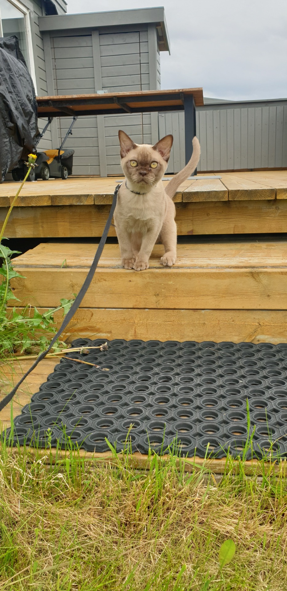Hun har også vært med på mange turer på dyrebutikker som Dogman og Hund som hobby, og hun er med på besøk til folk vi kjenner. Hun har også vært på strandturer og hun er med på campinghytta og skogshytta. Og hun elsker det! Dette er med andre ord katten for de som ønsker en aktiv bestevenn!